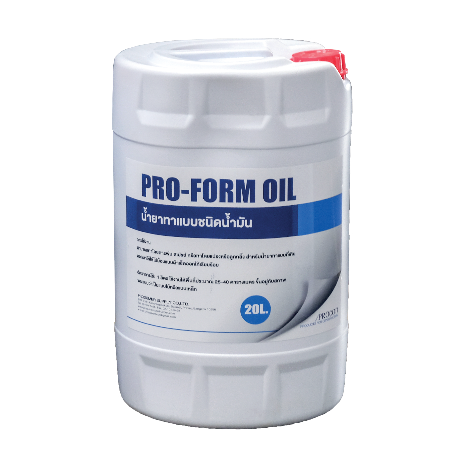 PRO-FORM OIL เป็นน้ำยาทาแบบที่มีส่วนผสมระหว่างน้ำมันกับสารเคมีพิเศษที่ไม่เป็นพิษซึ่งถูกออกแบบมาเป็นพิเศษให้มีคุณสมบัติดีเด่นกว่าน้ำยาทาแบบชนิดอื่นๆ โดยสารเคมีที่อยู่ในน้ำมันทาแบบจะทำปฎิกิริยาที่ผิวหน้าคอนกรีตทำให้เกิดชั้นขับไล่น้ำบางๆ บนผิวหน้าของแบบ ทำให้สามารถถอดแบบคอนกรีตออกได้ง่าย