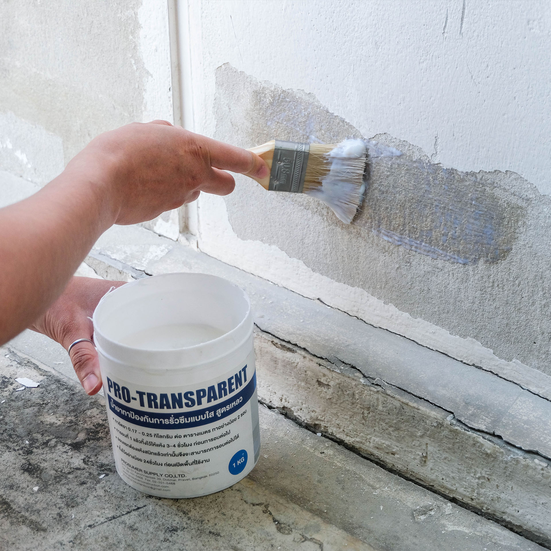 น้ำยากันซึมส่วนผสมเดียว แบบใส ใช้ทาป้องกันน้ำรั่วซึม และป้องกันความชื้นบริเวณพื้นผนังคอนกรีต, ผนังภายนอก-อาคาร, ระเบียง, รอยต่อขอบประตู-หน้าต่าง, ดาดฟ้าคอนกรีต,กระเบื้อง ฯลฯ
